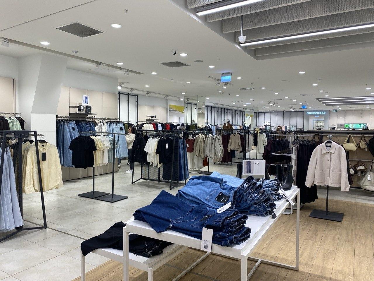В торговом зале нет признаков скорого закрытия: вешалки и полки заполнены товаром, в том числе из новых коллекций. В настоящее время в O«stin проводится сезонная распродажа со скидками до 50%. Посетителей в магазине достаточно много.