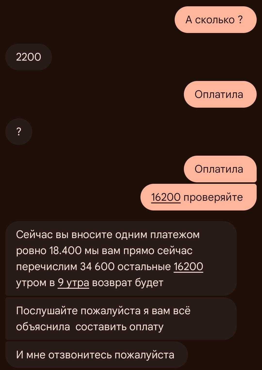 После первой оплаты мошенники не остановились. Они заявили о необходимости внести возвратный депозит, изначально запросив 6200 рублей, а затем неоднократно увеличивая сумму. «Они старались меня запутать, чтобы я сомневалась в себе. Например: с вас 6200. И после перевода говорят: «Девушка, вы, наверное, не расслышали, я же вам говорил 16 200». Я в панике докидываю 10 тысяч. Мне говорят, надо одним платежом 16 200, иначе выселят отца. Прошу вернуть деньги, мне отказывают. Я ору на них, но перевожу еще 16 200», — поделилась женщина. Затем с неё потребовали дополнительно 18 400 рублей за номер и страховку, что она также выполнила.