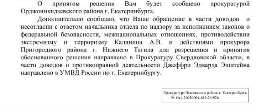 «Международный педофил и торговец людьми приезжал на Урал и вербовал девушек для своей противоправной деятельности. Прошу провести комплекс проверочных мероприятий для установления личностей и судьбы потерпевших от Эпштейна жителей Свердловской области», — указано в документе.