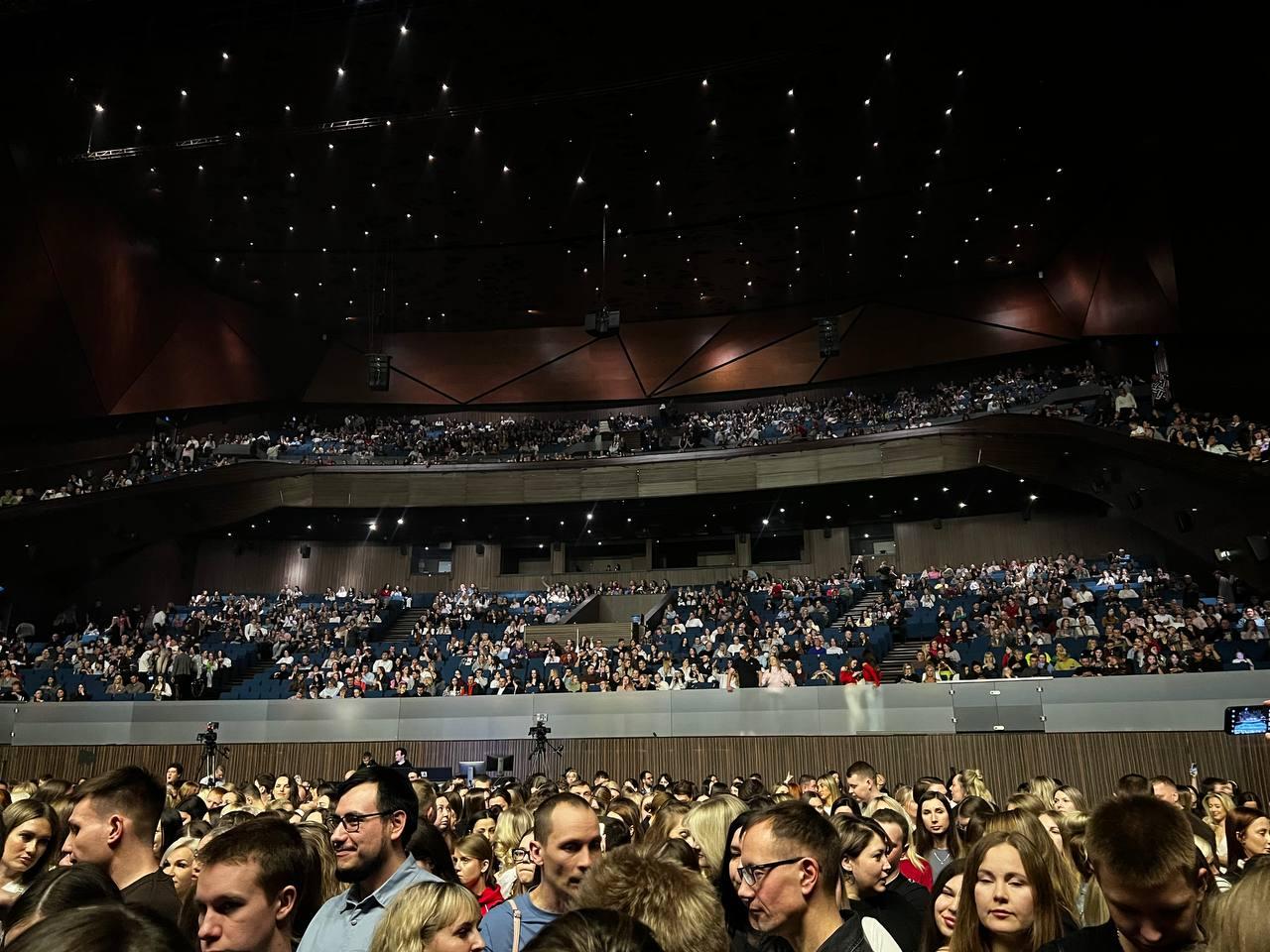 Очередей на входе удалось избежать благодаря слаженной работе волонтеров, обслуживавших турникеты и рамки. В фойе дежурили наряды полиции и ОМОН, что для концертных мероприятий встречается не так часто.