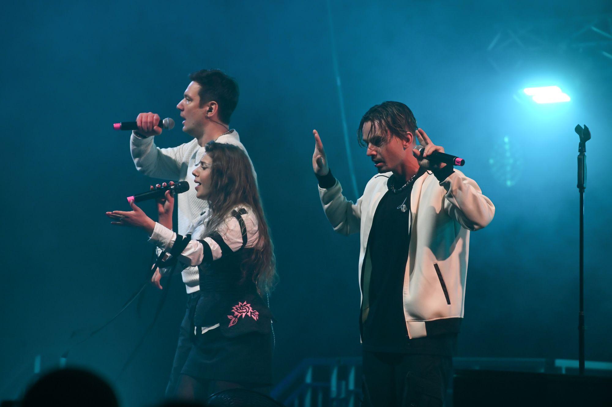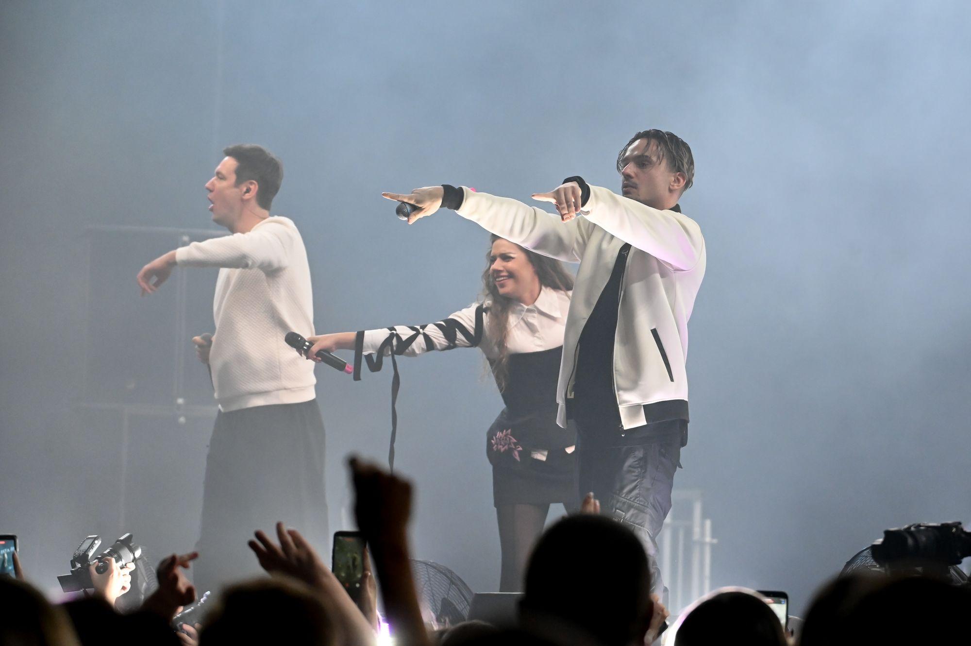 Дуэт Gayazovs Brothers зажег публику композицией «Малиновая Лада», а Нюша поразила зрителей своим блестящим нарядом.