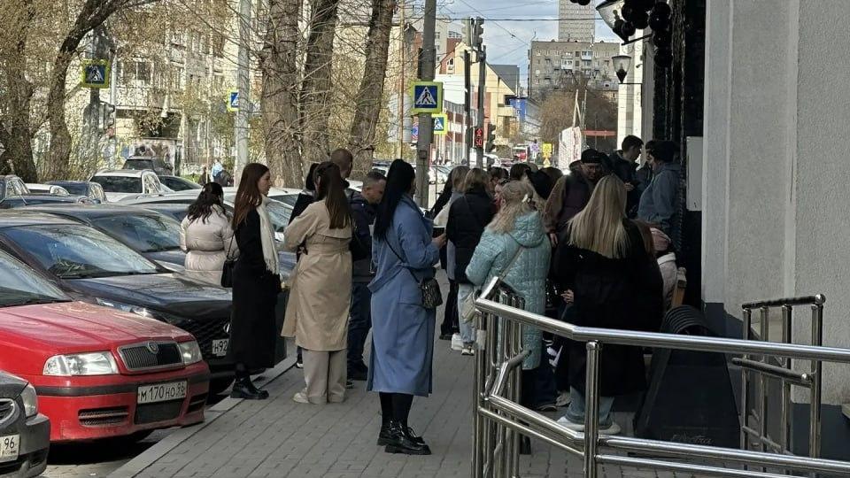Очередь выстроилась у бара «Огонёк» на улице Энгельса, где ожидается бесплатный концерт уральского рэпера Лёши Свика.