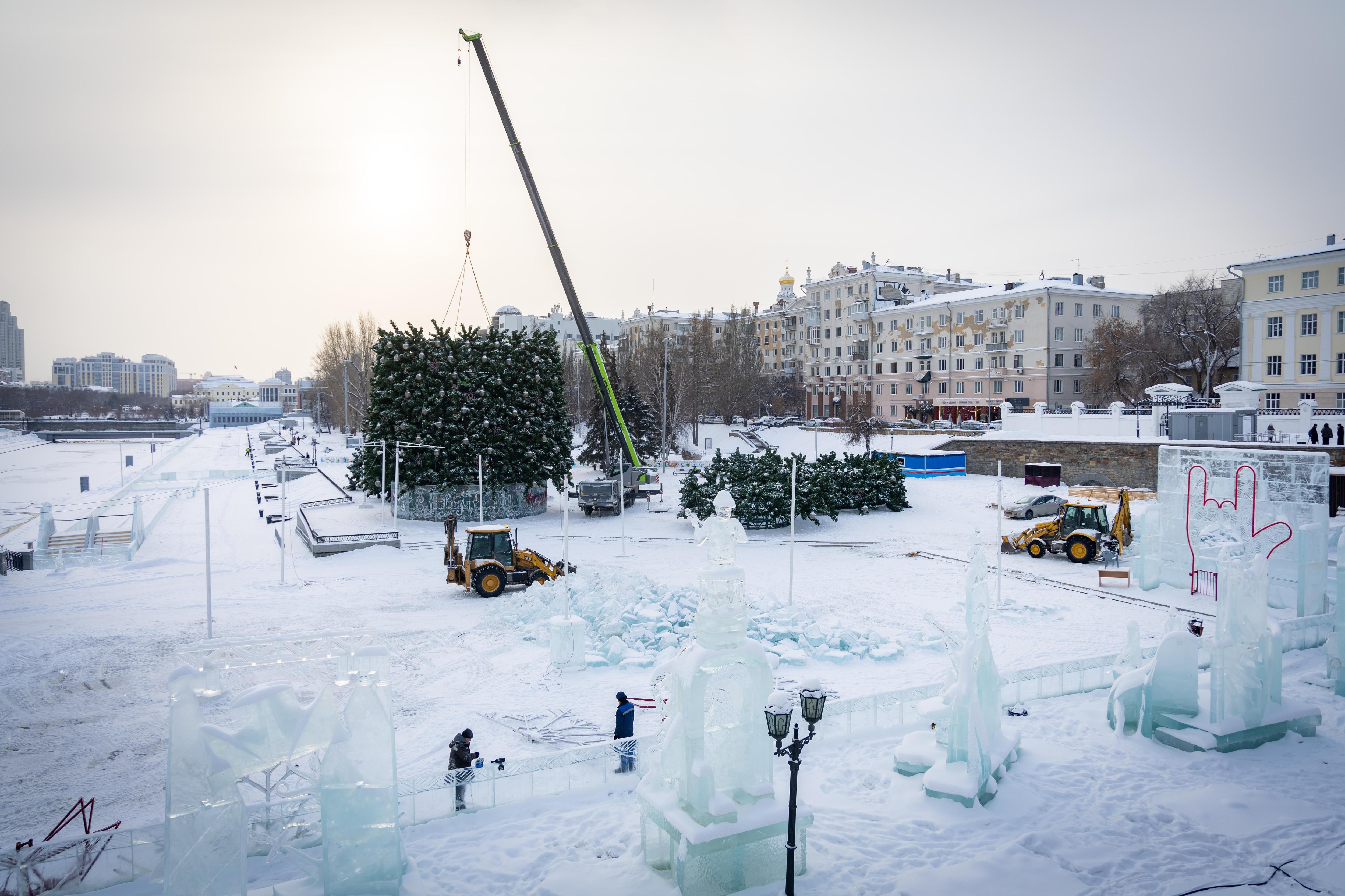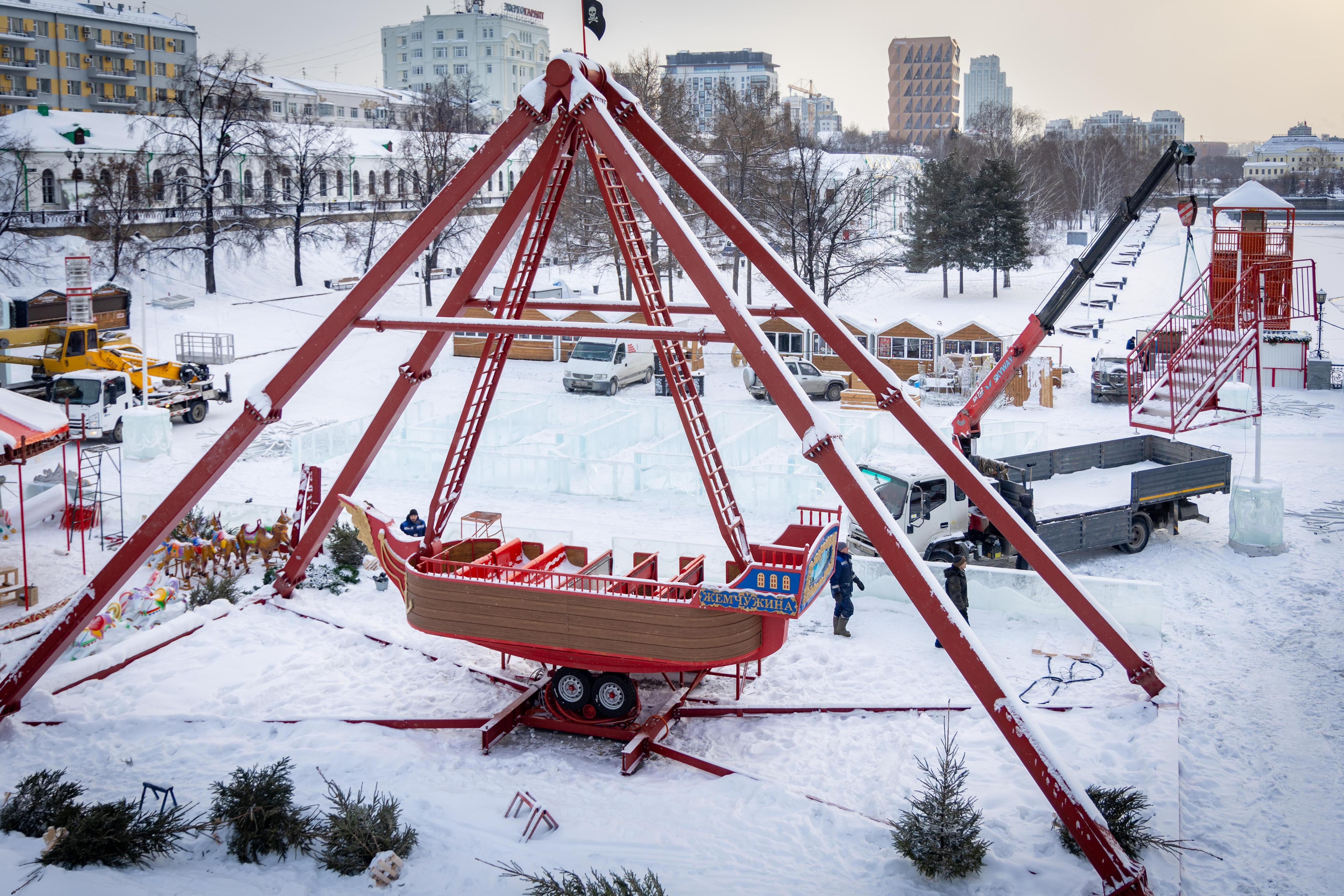 Демонтаж новогоднего ледового городка в историческом сквере Екатеринбурга продолжается уже третий день подряд. В 2026 году его работа прекратилась даже раньше, чем закрылся каток на площади 1905 года, поскольку содержание аттракционов стало слишком затратным.