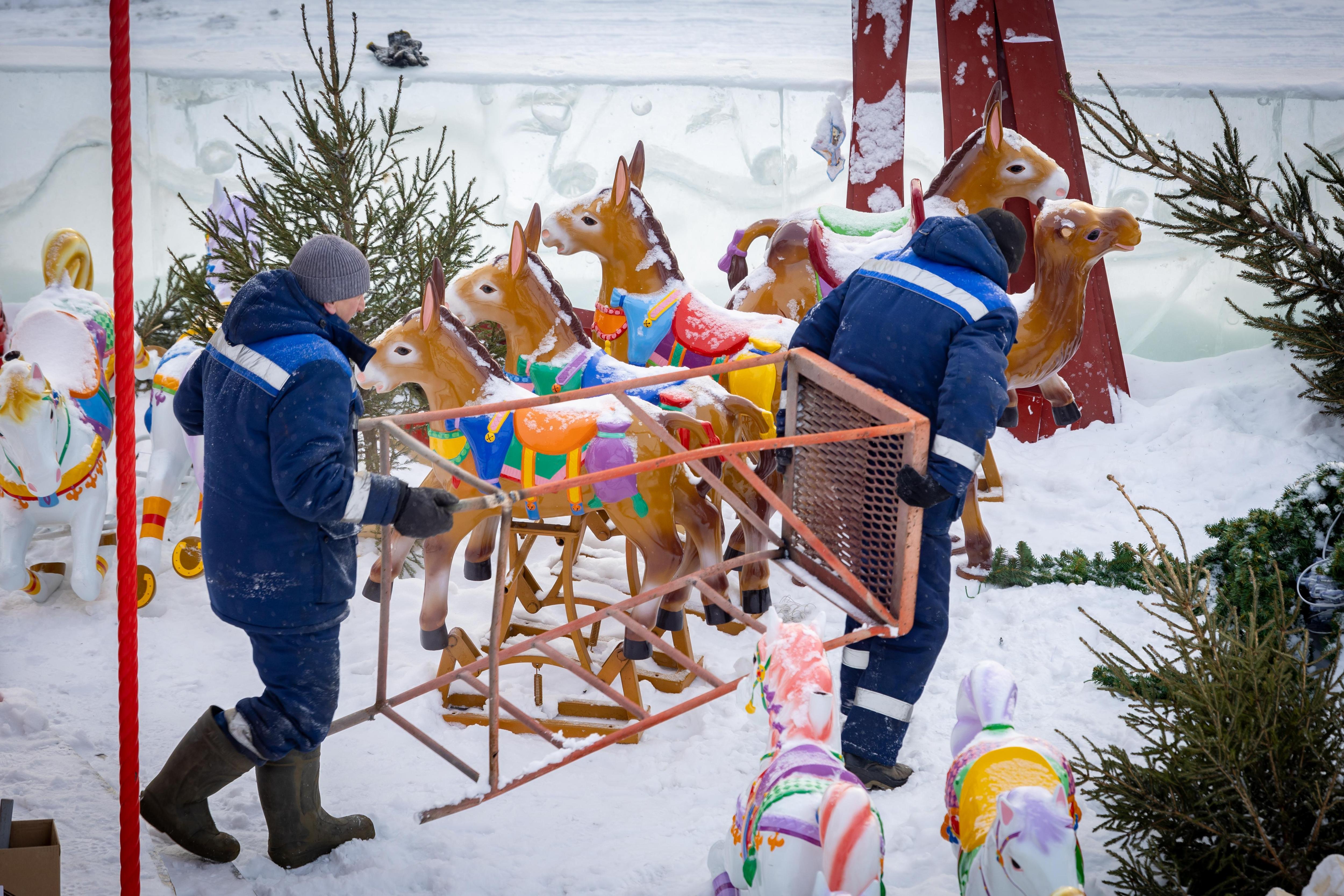 Впервые лед для сооружений пришлось завозить из другого региона — Ханты-Мансийского автономного округа. Поставки осуществляла компания «Айс-Проект 2000», которая на протяжении многих лет выигрывает контракты у городской администрации.