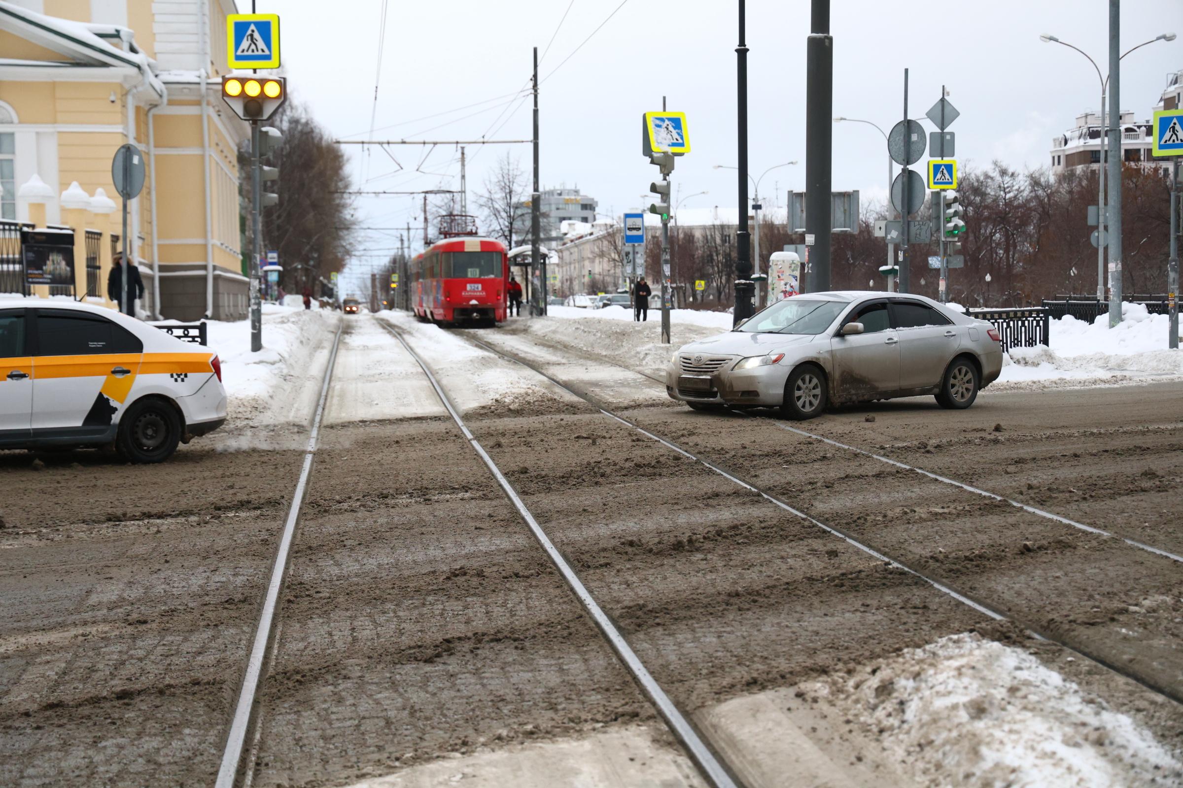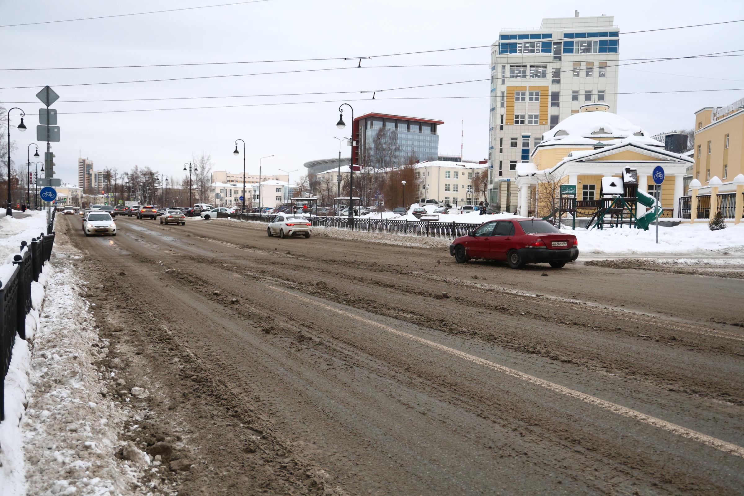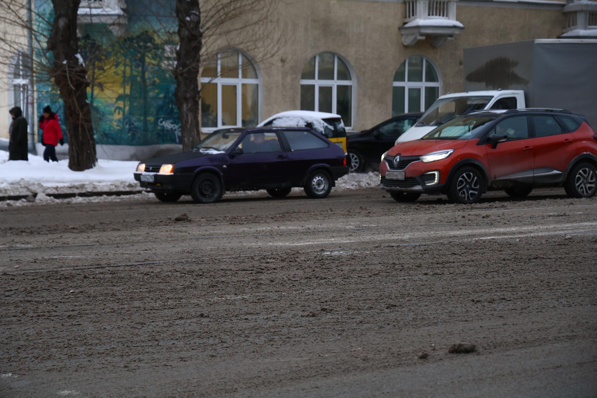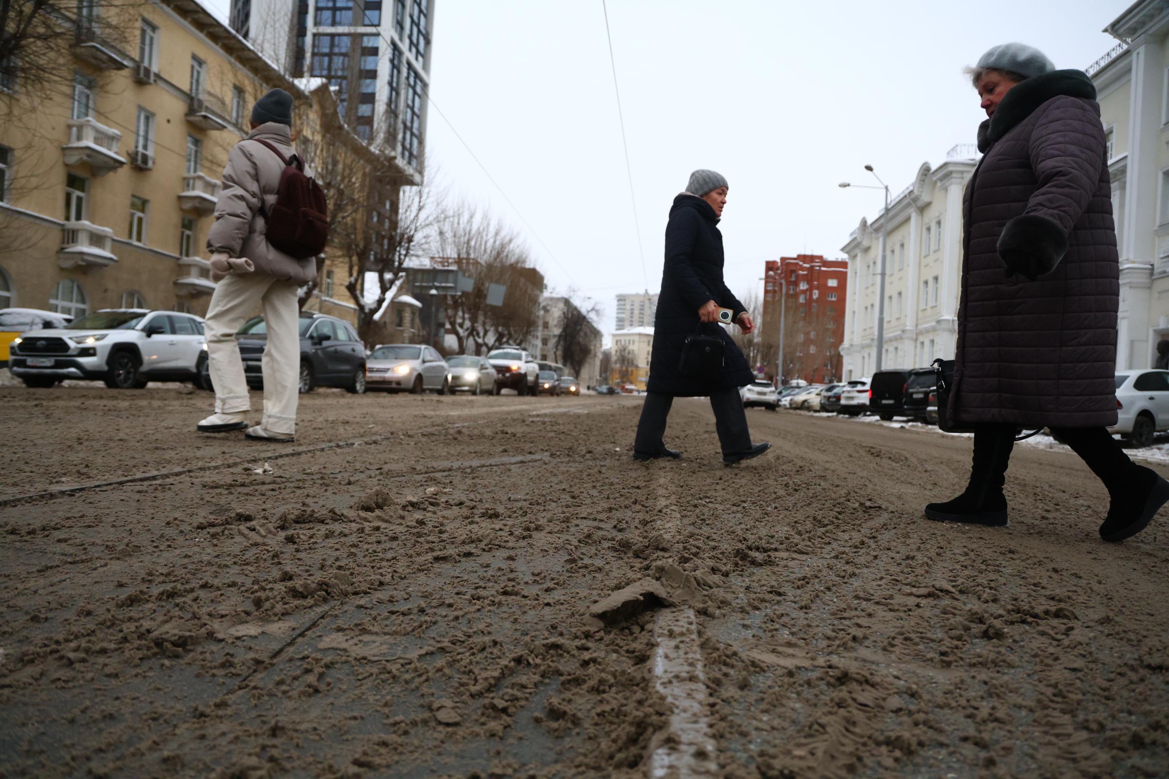 Типичная для зимнего периода картина — грязь на улицах Екатеринбурга.