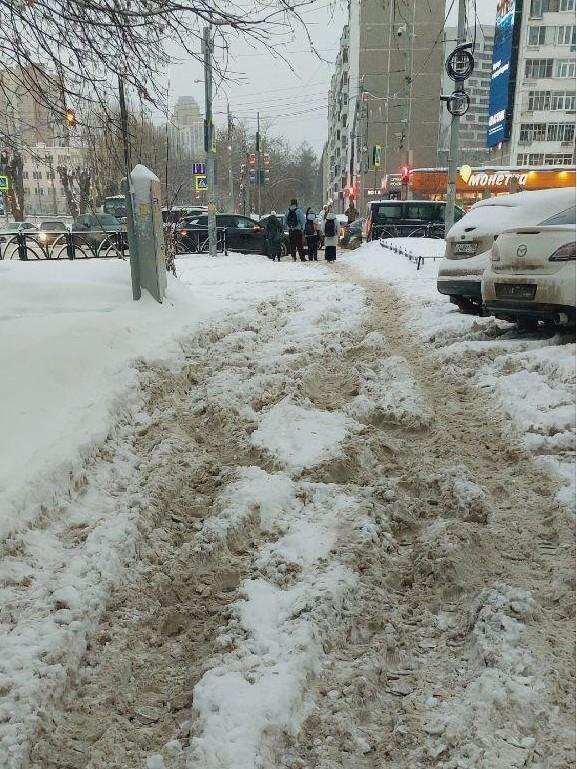 «Щорса в направлении от ст. ЦПКиО к Машинной. Пройти невозможно, не подвернув ногу. Также пешеходная вдоль Машинной, въезды во дворы все в снежной каше и колеях, которые приходится чуть ли не перепрыгивать», — отметила подписчица с ником LinaLee.