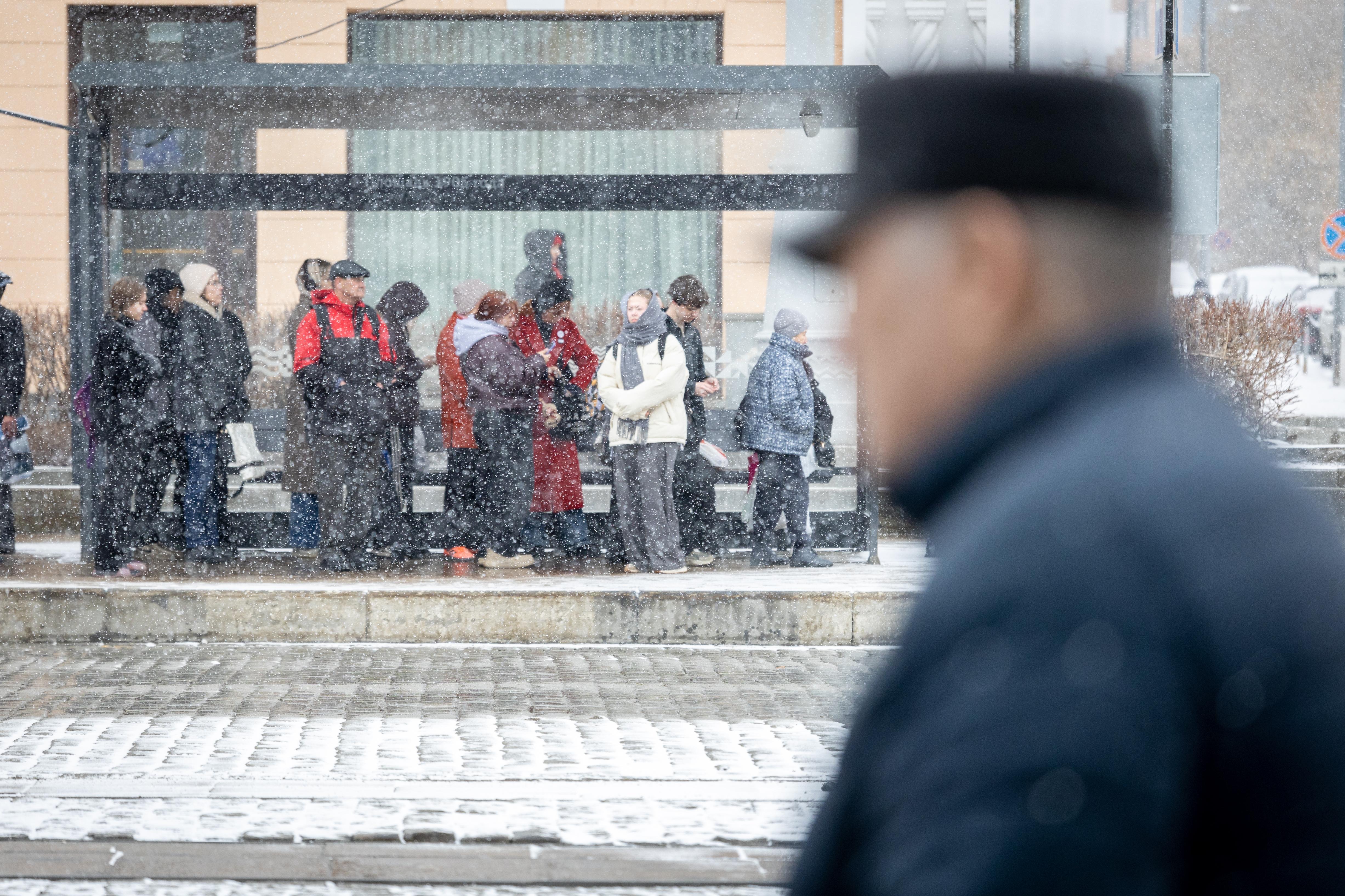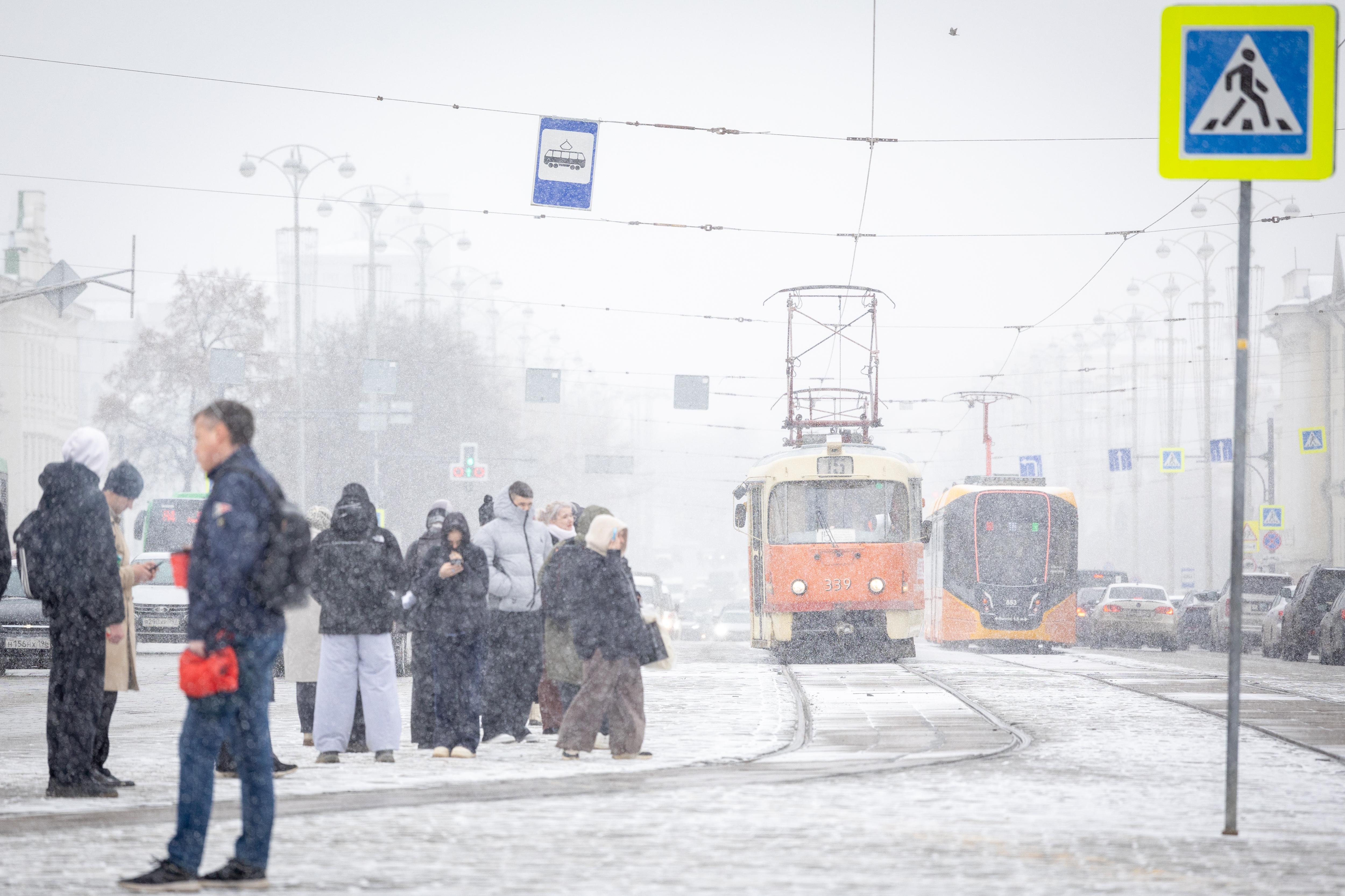 10 апреля Екатеринбург накрыла мощная снежная буря. Обильные осадки и гололедица парализовали движение, став причиной множества ДТП. Пешеводы вынуждены пережидать непогоду под навесами остановок общественного транспорта.