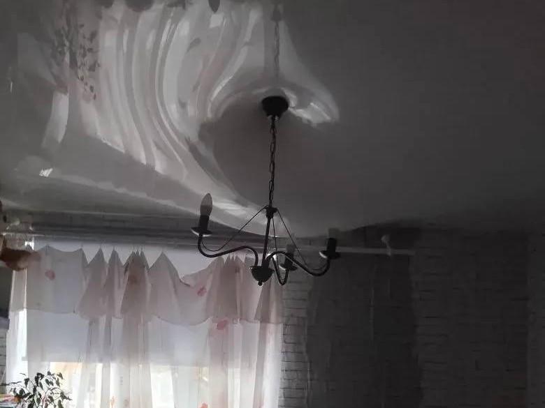 Натяжные потолки лишь частично защитили жильцов от потока растаявшего снега.