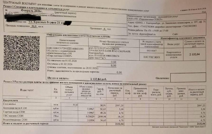 Причиной путаницы стала смена управляющей компании. Если до 1 февраля 2026 года домом управляла «Алгана», то с этого числа полномочия перешли к «Перспективе-Север». При этом за прошедший месяц собственники получили счета от обеих организаций.