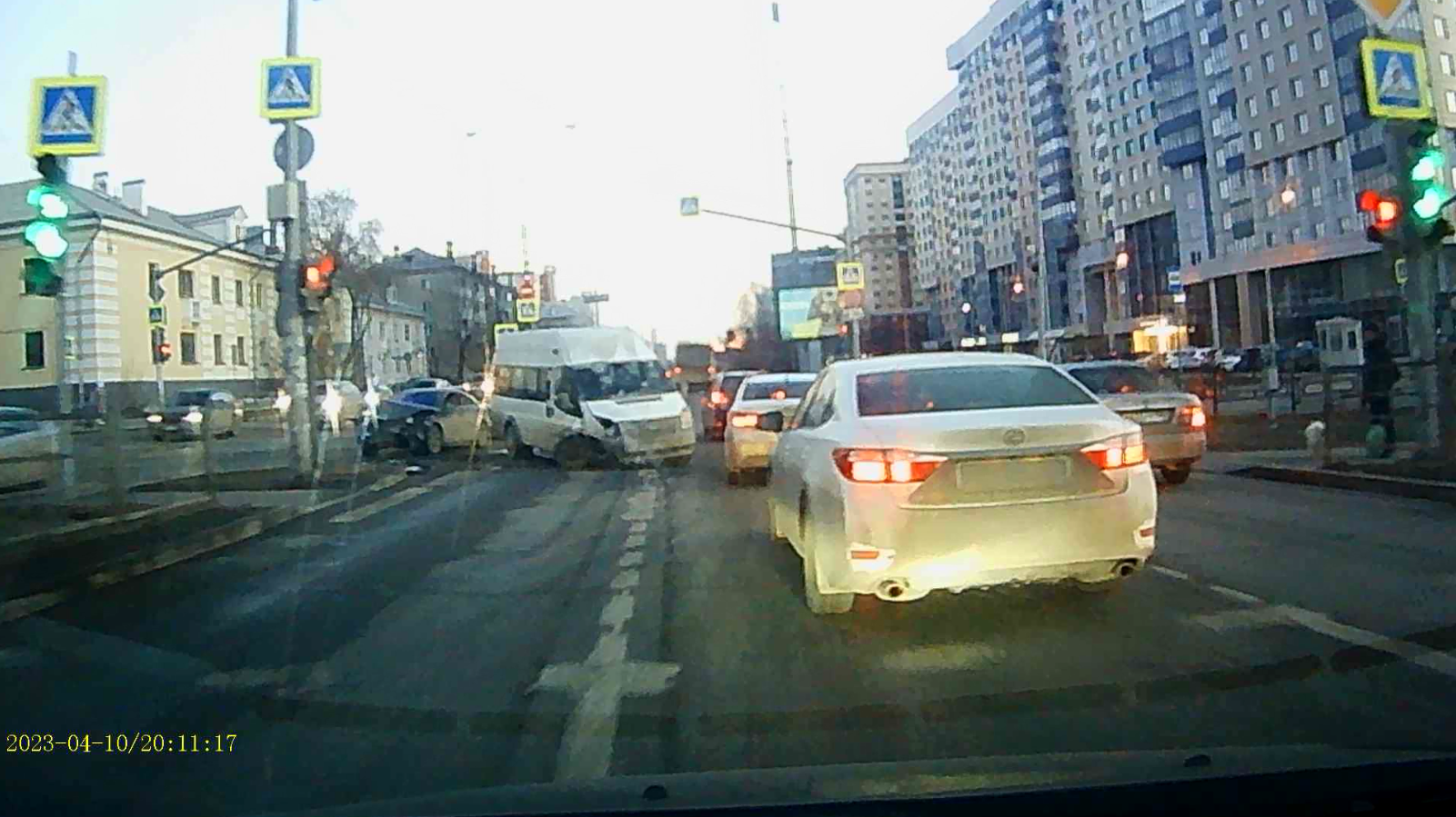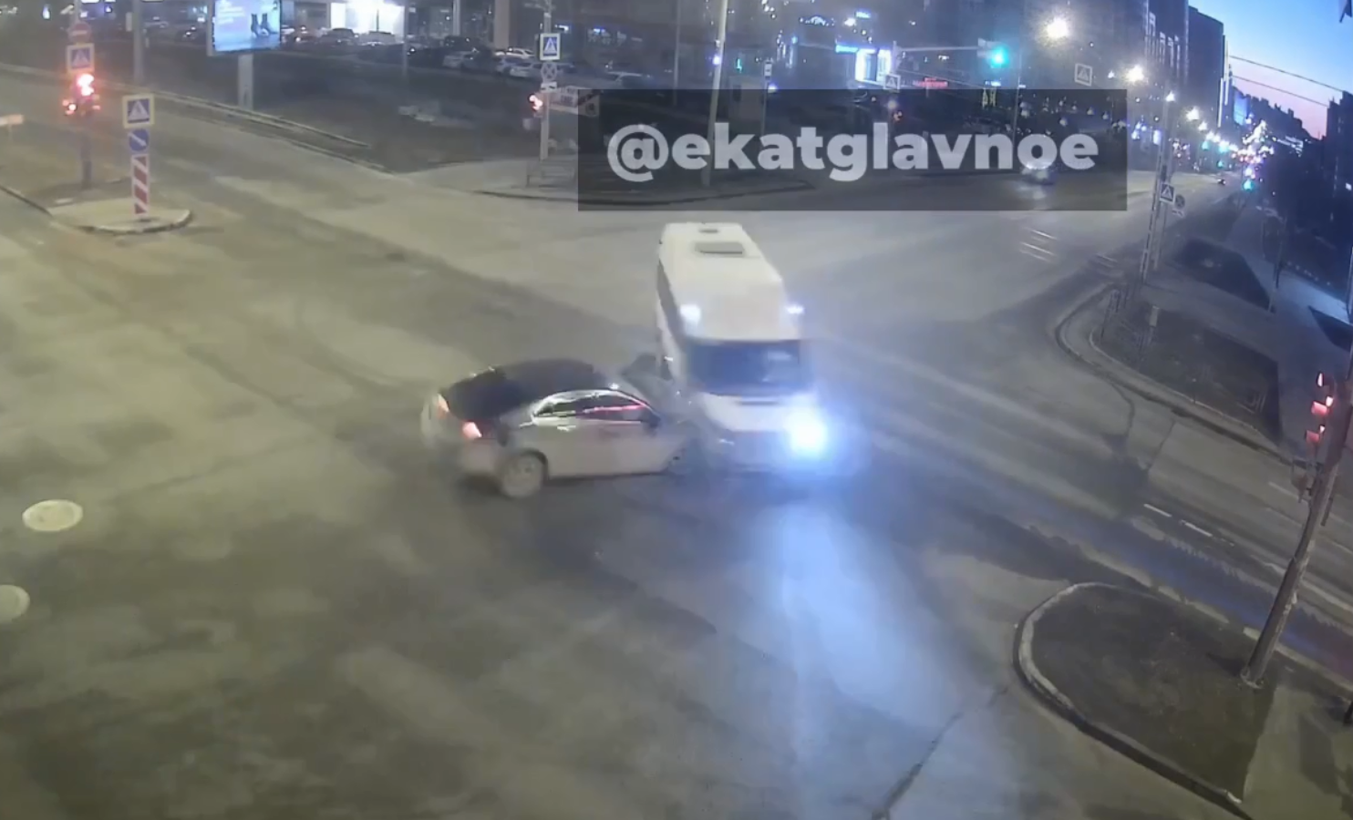 Столкновение микроавтобуса и легкового автомобиля на перекрестке попало на видео, опубликованное в Telegram.