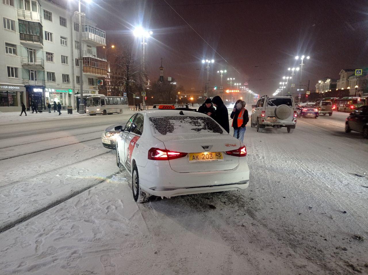 ДТП с участием такси и легкового автомобиля на трамвайных путях парализовало движение общественного транспорта.