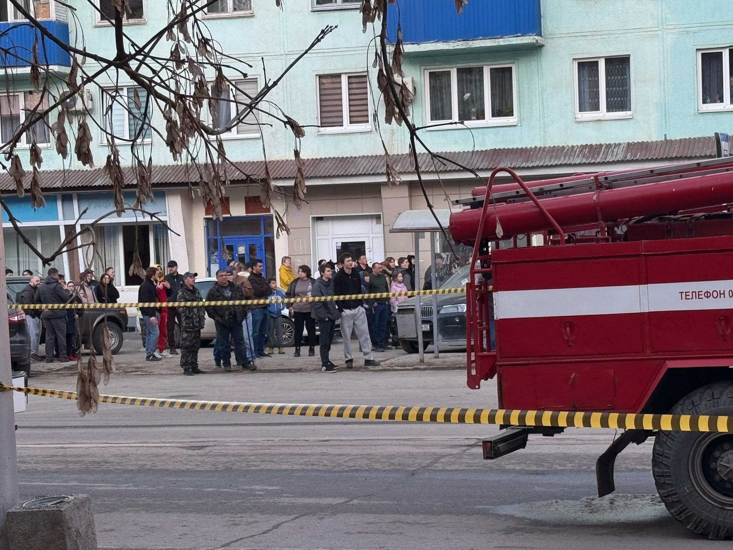 Многоэтажный дом в Уфе, в который врезался беспилотник.