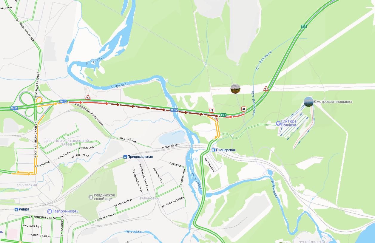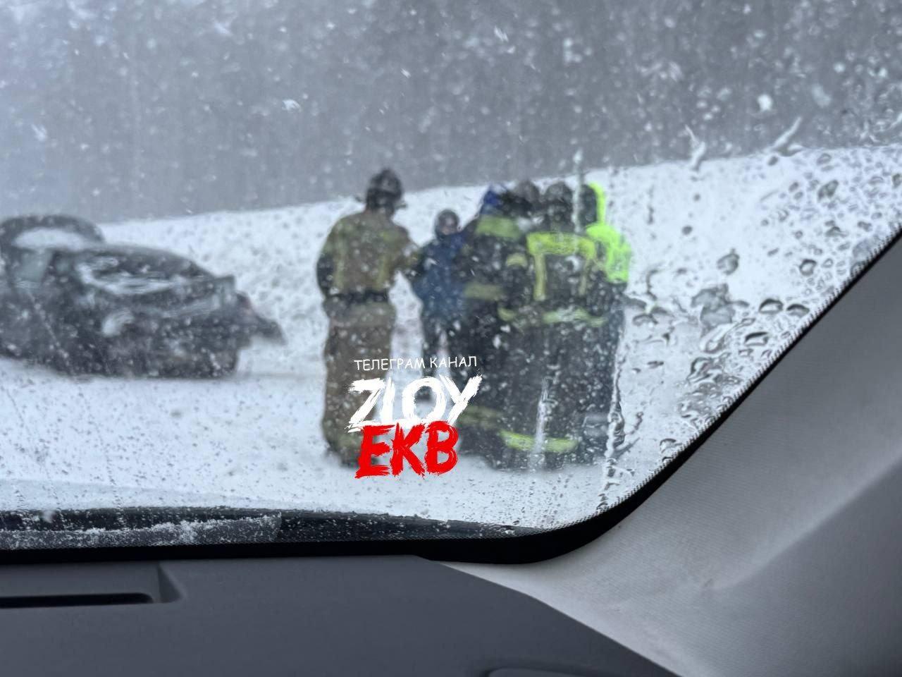 Одна полоса движения на автодороге рядом с Ревдой оказалась перекрыта в результате аварии. Свидетели публикуют фотографии, на которых запечатлён сильно повреждённый легковой автомобиль. Другие транспортные средства, предположительно участвовавшие в столкновении, в кадр не попали.