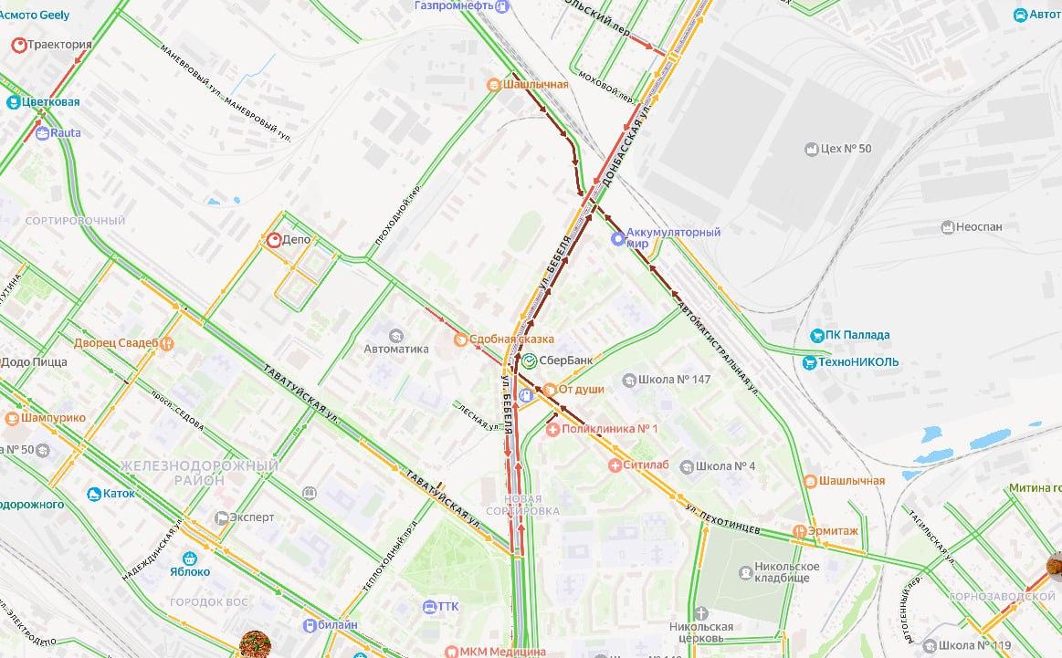 Вечером 4 февраля на улице Бебеля в Екатеринбурге столкнулись несколько автомобилей. Инцидент привел к образованию пробки и затруднению движения.