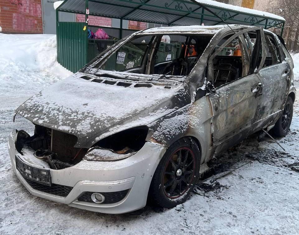 На Юго-Западе Екатеринбурга сгорел Mercedes у школы
