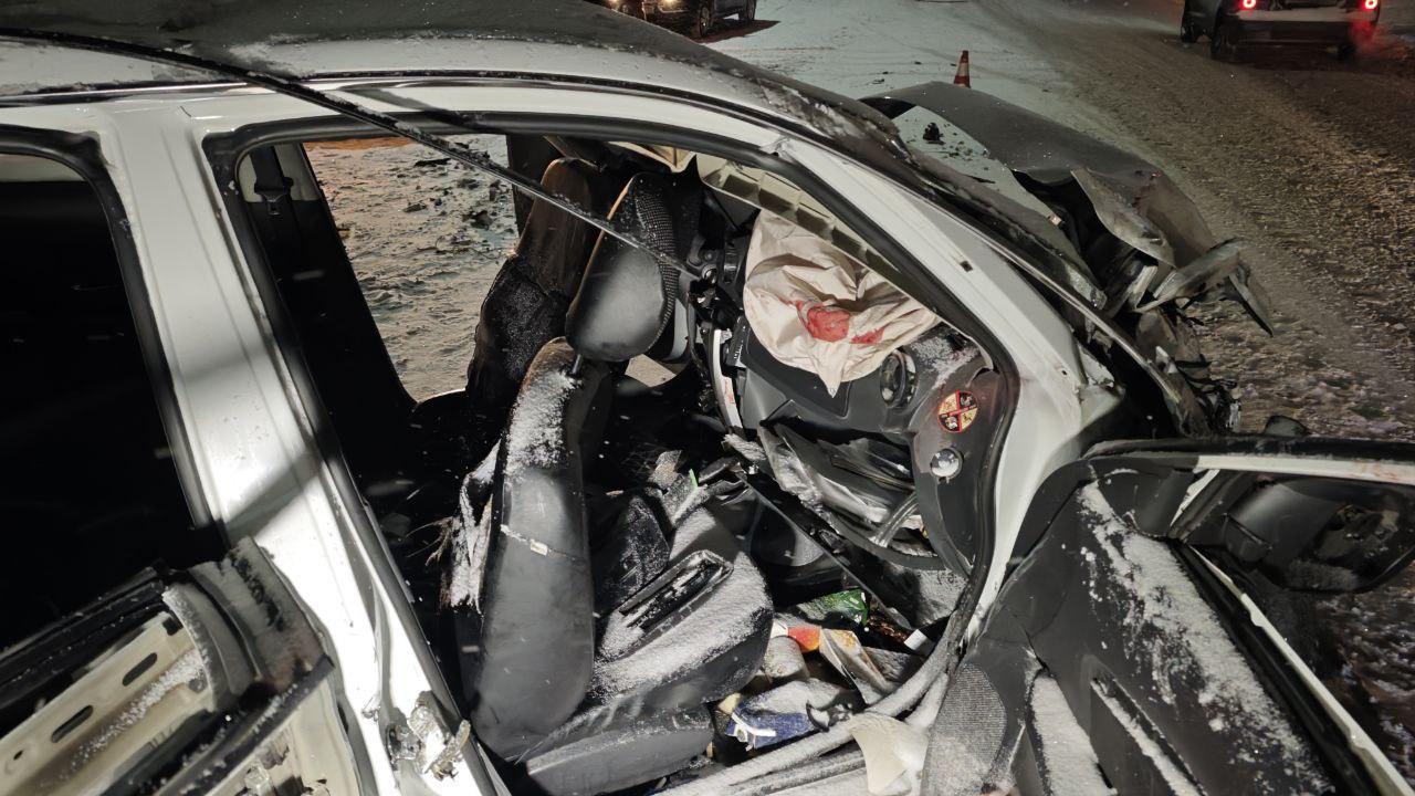 Ранее сообщалось, что в салоне Nissan одного из мужчин зажало деформированными элементами переднего сиденья. Для ликвидации последствий ДТП на трассе было временно перекрыто движение.