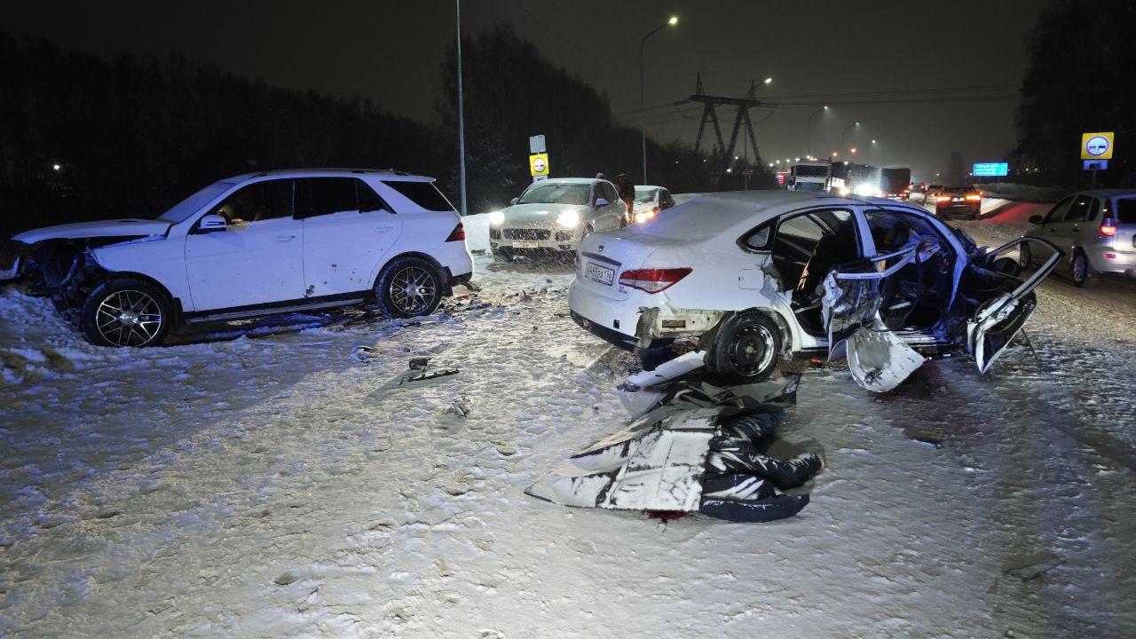 Стали известны новые подробности смертельного дорожно-транспортного происшествия, которое произошло на Полевском тракте в окрестностях Екатеринбурга. В столкновении участвовали три машины: Nissan, Audi и Mercedes.