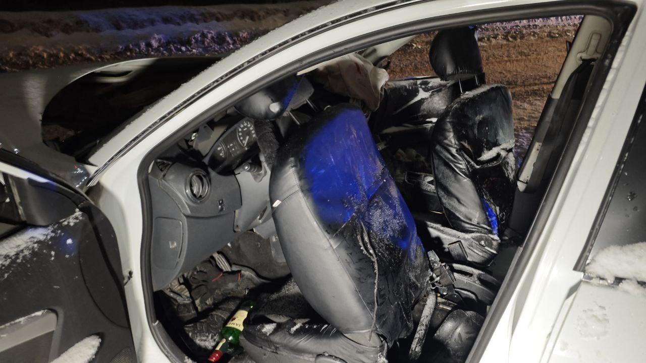 В салоне под рулевой колонкой обнаружена бутылка из-под крепкого алкоголя