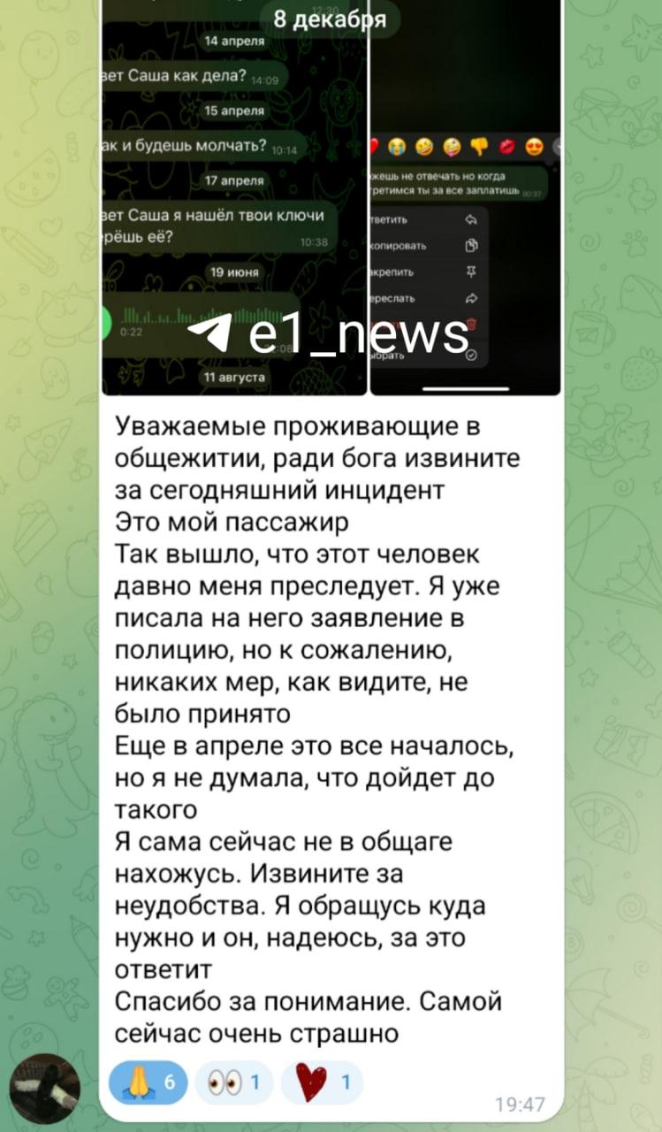 Как рассказала одна из студенток, позже в чате появилась та самая Саша. «Она извинилась за произошедший инцидент и пояснила, что это её бывший, который её преследует с апреля. Она говорит, что даже обращалась в полицию, однако ничего не изменилось», — пояснила она.