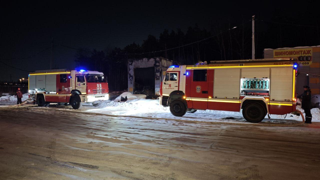 В Екатеринбурге загорелся автосервис с дорогими авто