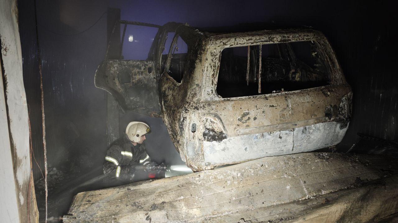 В результате пожара пострадали два внедорожника Toyota Land Cruiser и кроссовер Chery Tiggo.