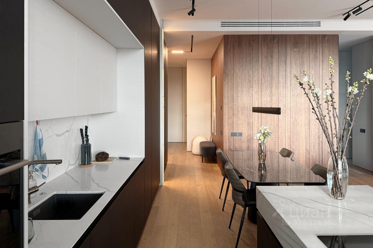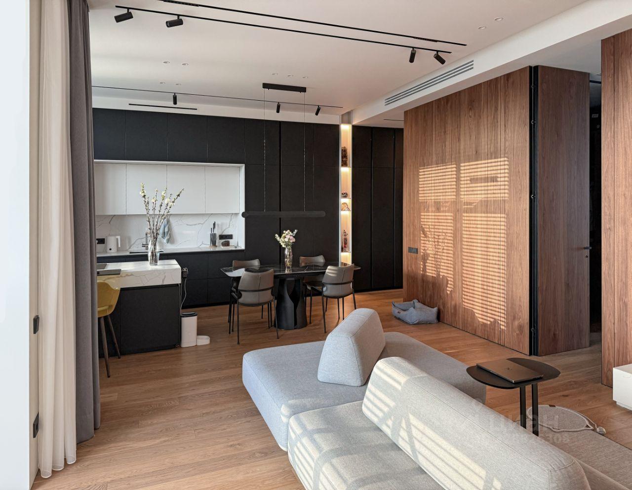 В объявлении указано: «Во всей квартире выдержан единый дизайн-код, акцент на натуральных материалах и элегантной эстетике».