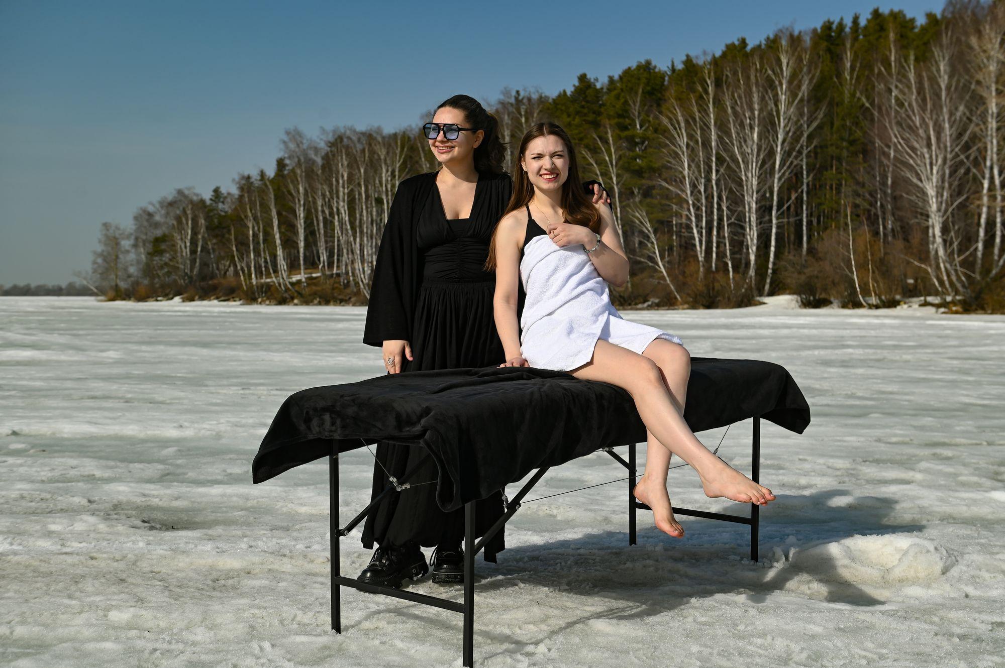 В необычной весенней фотосессии приняли участие массажистка и певица Екатерина Цейвальд, а также психолог Анна. Участницы отметили, что в солнечный день создавалось ощущение летнего тепла. За происходящим с интересом наблюдали рыбаки, находившиеся неподалеку.
