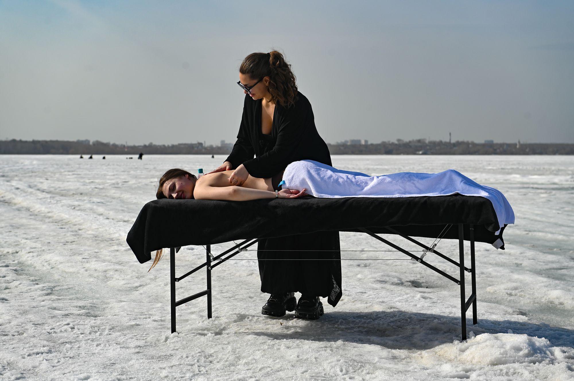 Даже массаж можно сделать на ледяной поверхности.