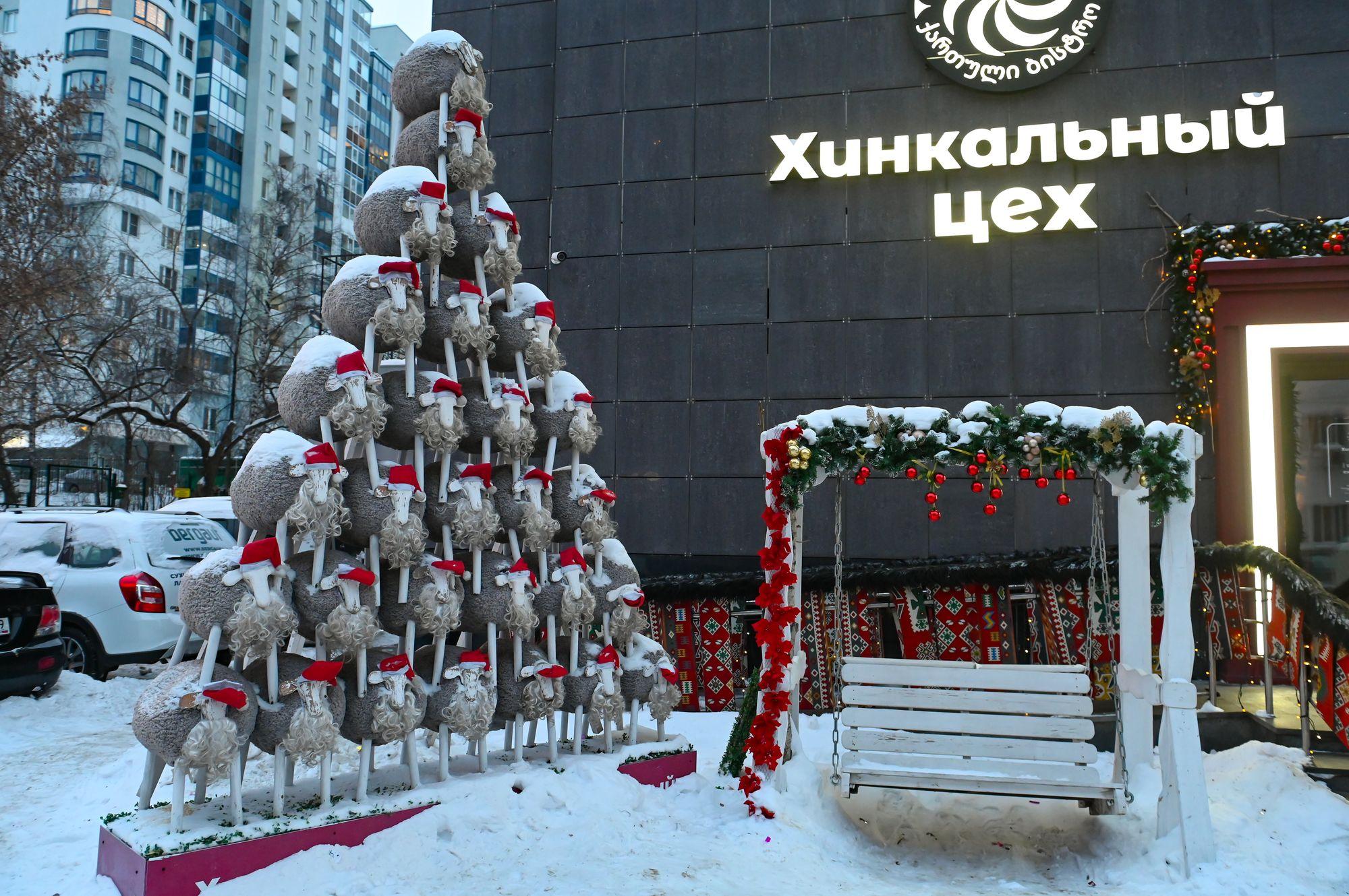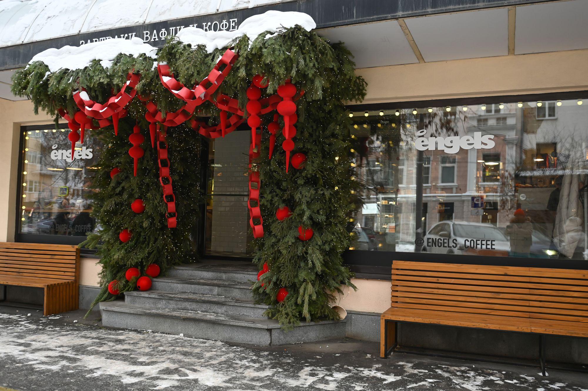 Входные группы многих кафе и магазинов украсили к сезону, превратив их в готовые фотозоны.