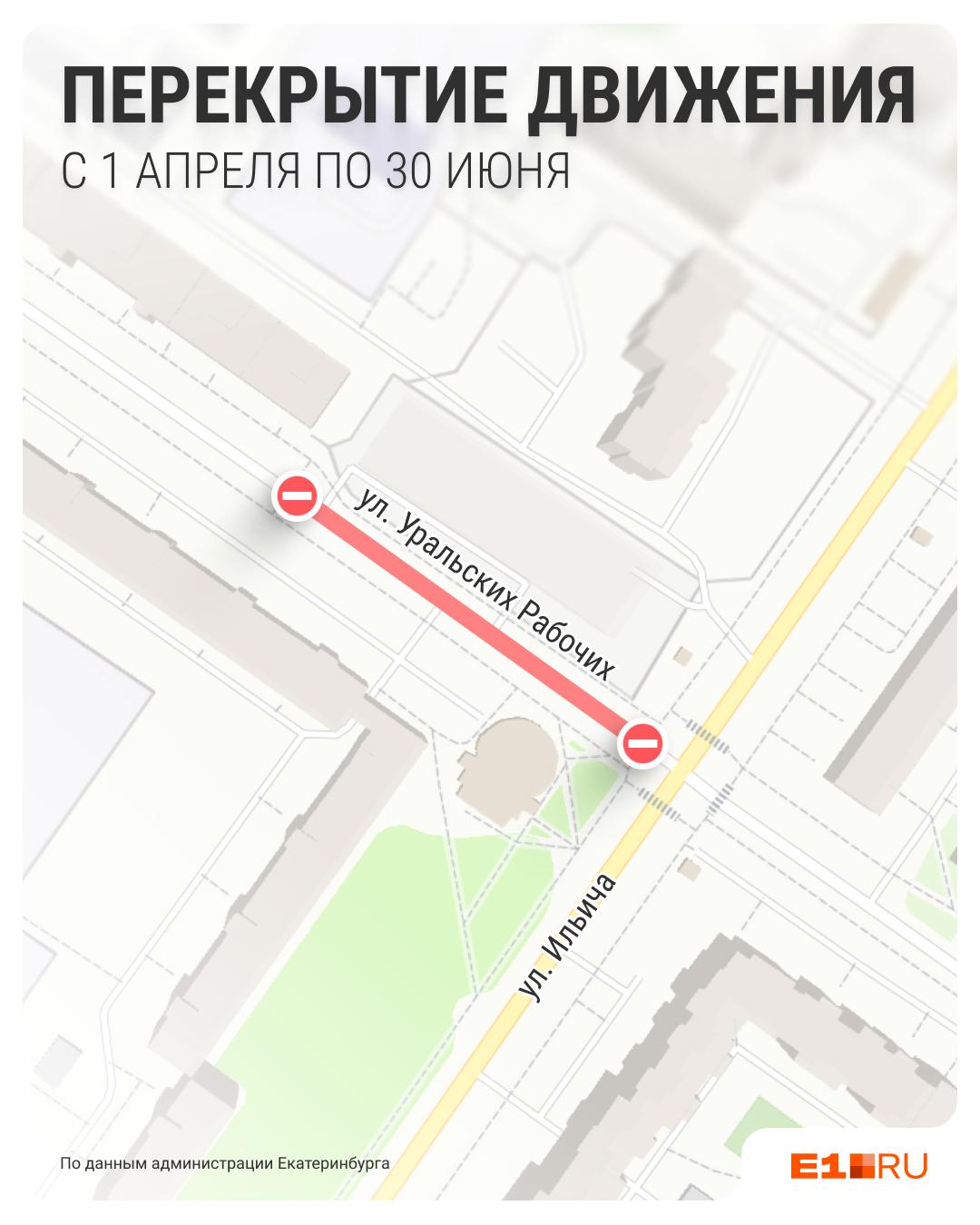 С 1 апреля по 30 июня движение транспорта по улице Уральских Рабочих на Уралмаше будет закрыто. Работы проведет городской «Водоканал» на участке от дома №31 до дома №33.